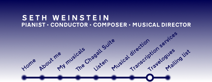 Home News and events About me Biography, background, press, and tidbits both musical and nonmusical My musicals Five shows I've written, including one that ran Off-Broadway in 2006 and one currently in development The Chagall Suite A commissioned 8-movement piano piece inspired by Marc Chagall's artworks, and a tribute to Chagall and Elvis Listen Hear my music on this site and buy my recordings Musical direction See my ideas regarding musical direction, see my resume, or let me coach you for auditions and give you accompaniment tracks to practice with Transcription services Send me a recording to create sheet music from, or have me transpose or arrange a song or instrumental work Travelogues Read accounts of my long-term trips and my experience on the Fosse tour Mailing list Subscribe to receive news and travelogues | Trip 41 — Yell Walk25 April to 6 May 2024The Shetland isle of Yell is the 21st of the 26 Abecedarian Walks, my endeavor to walk around islands whose names begin with each of the letters of the alphabet. Each "day" below corresponds to a walking day. Occasionally I took a day off from walking, and experiences from those days are incorporated into the previous or the following walking day's account. In addition to these verbal accounts are musings, photos, and videos on Instagram and Twitter.